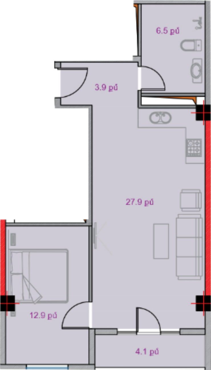 | Building 6 | 5 | 1 комната | 35.4 | 400,000 | 14,160,000 | |
