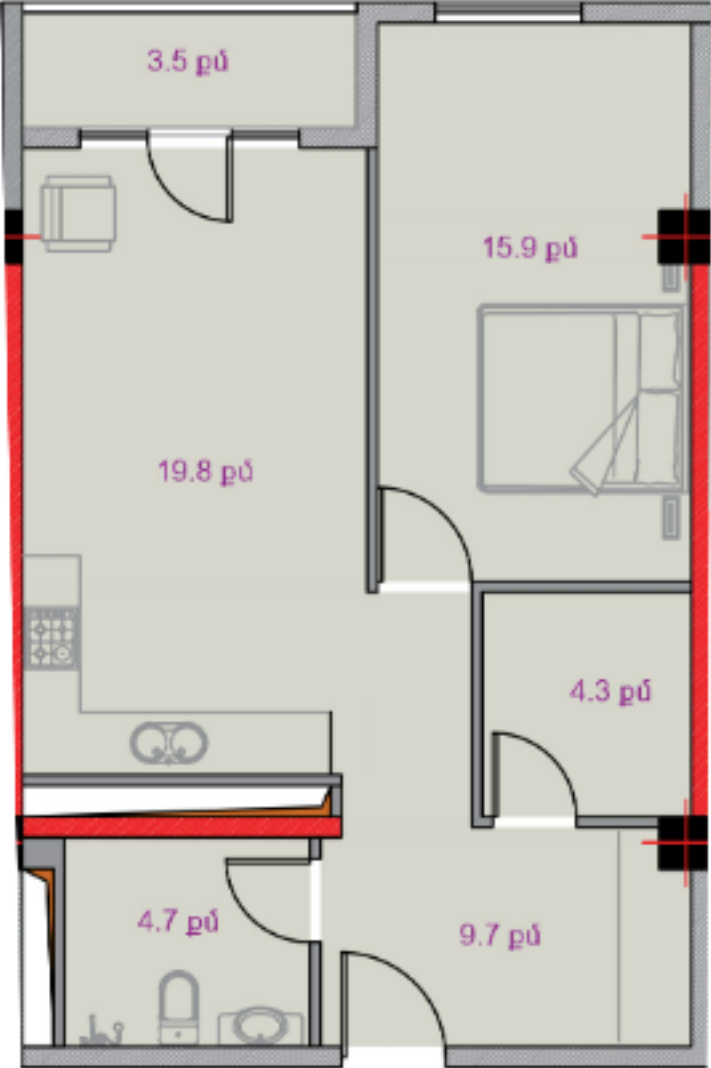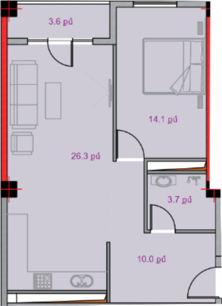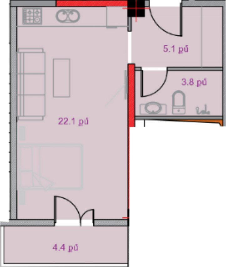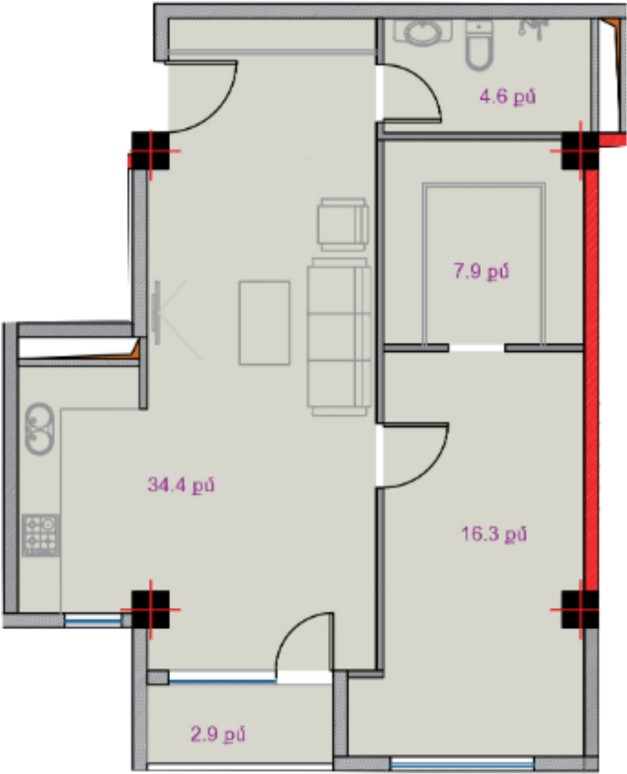 Площадь квартиры: 34.5 кв. м - 76,8 кв. м