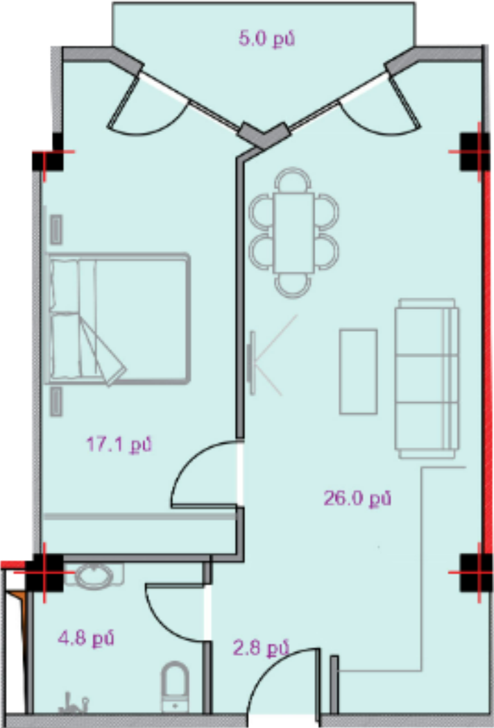 | Building 6 | 5 | 2 комнаты | 66.1 | 400,000 | 26,440,000 | |