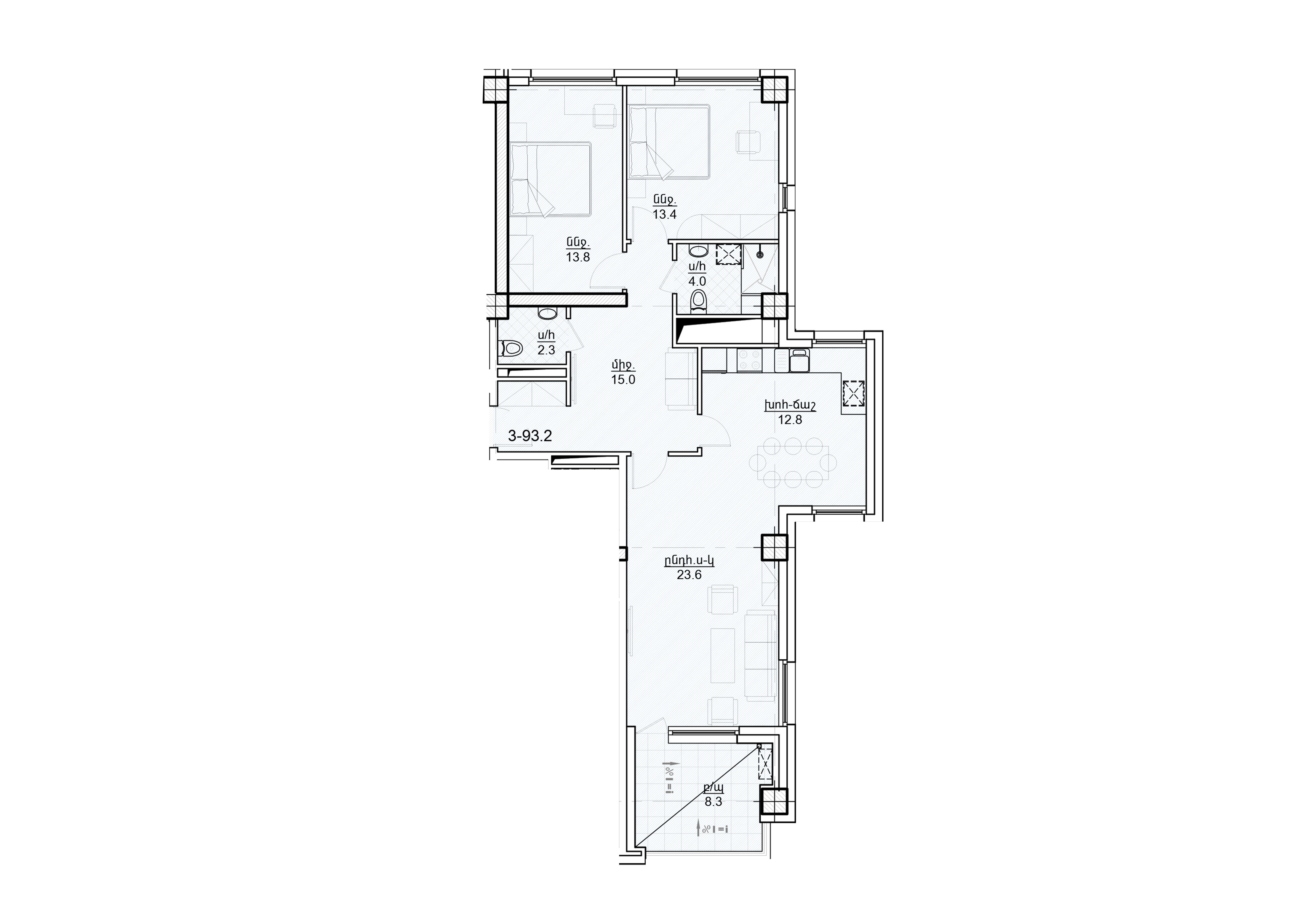 Площадь квартиры: 57 кв.м.-113 кв.м.