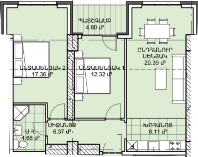1 кв. м.начиная с 440.000 драм