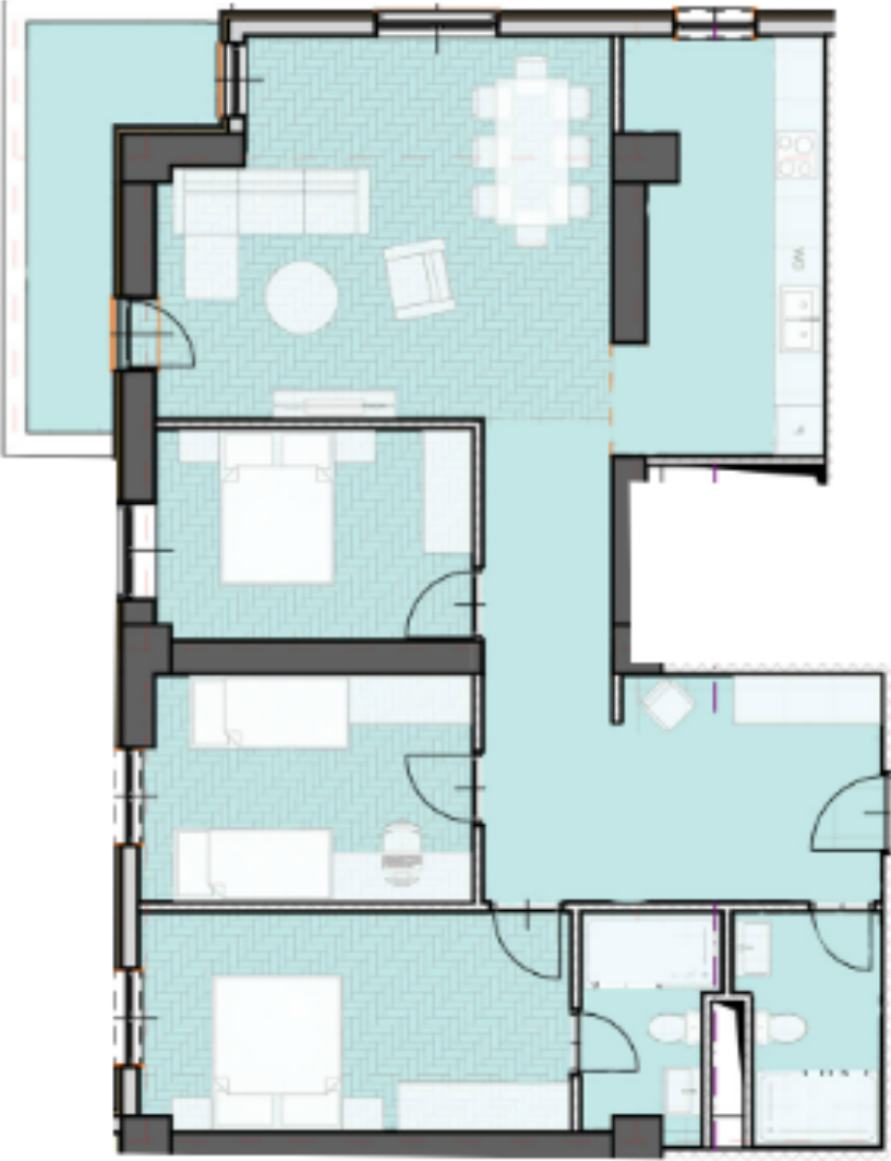 Բնակարանների մակերես՝ 55քմ - 108քմ